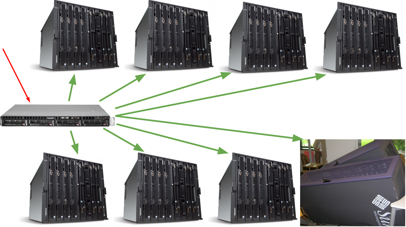 - сервер распределения нагрузки проверяет состояние восьми CD-серверов →