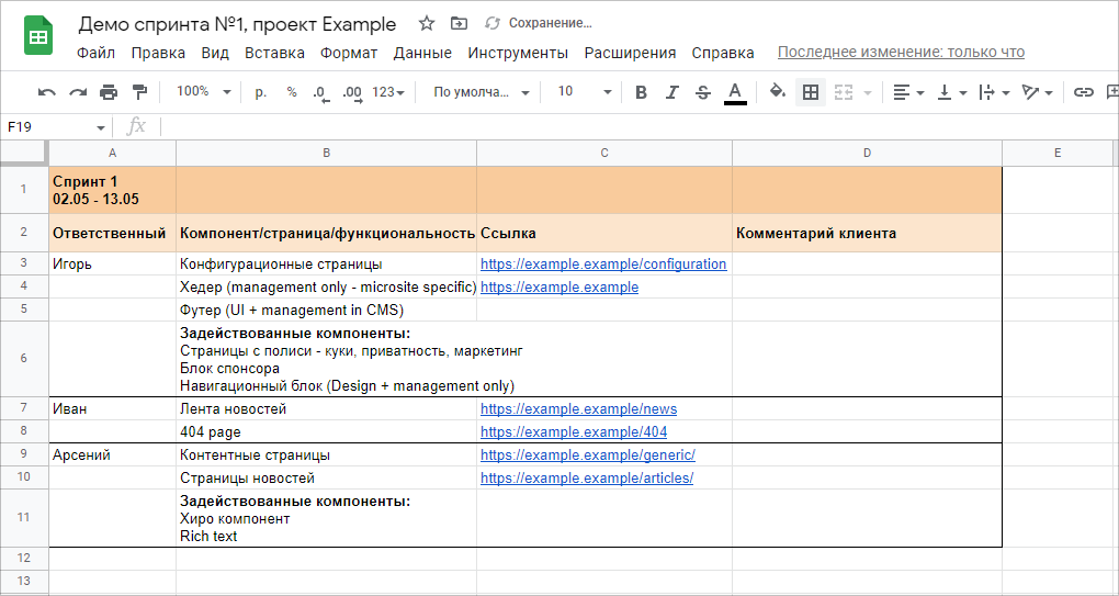 Тот же документ можно расшарить с клиентом и предложить ему прописать в секциях фидбэк.