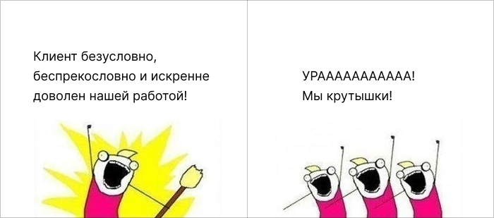 Если фидбэк исключительно положительный — поздравляю! Скорее всего, вы отлично понимаете, что именно хочет клиент. Конечно, есть вероятность, что вы показывали дизайн инженерам, которым на эстетику, в общем-то, плевать. Но это вряд ли)) Опустим этот вариант и остановимся на том, в котором вы просто идеально провели демо.