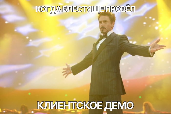К тому же, проведение демо — это публичное выступление. Конечно, не каждый рожден Крисом Роком, но навык публичных выступлений важен для хорошего разработчика. Регулярное участие в демо — отличный способ его прокачать. Клиент – это весьма лояльная аудитория — он понимает, что не в театре драмы.