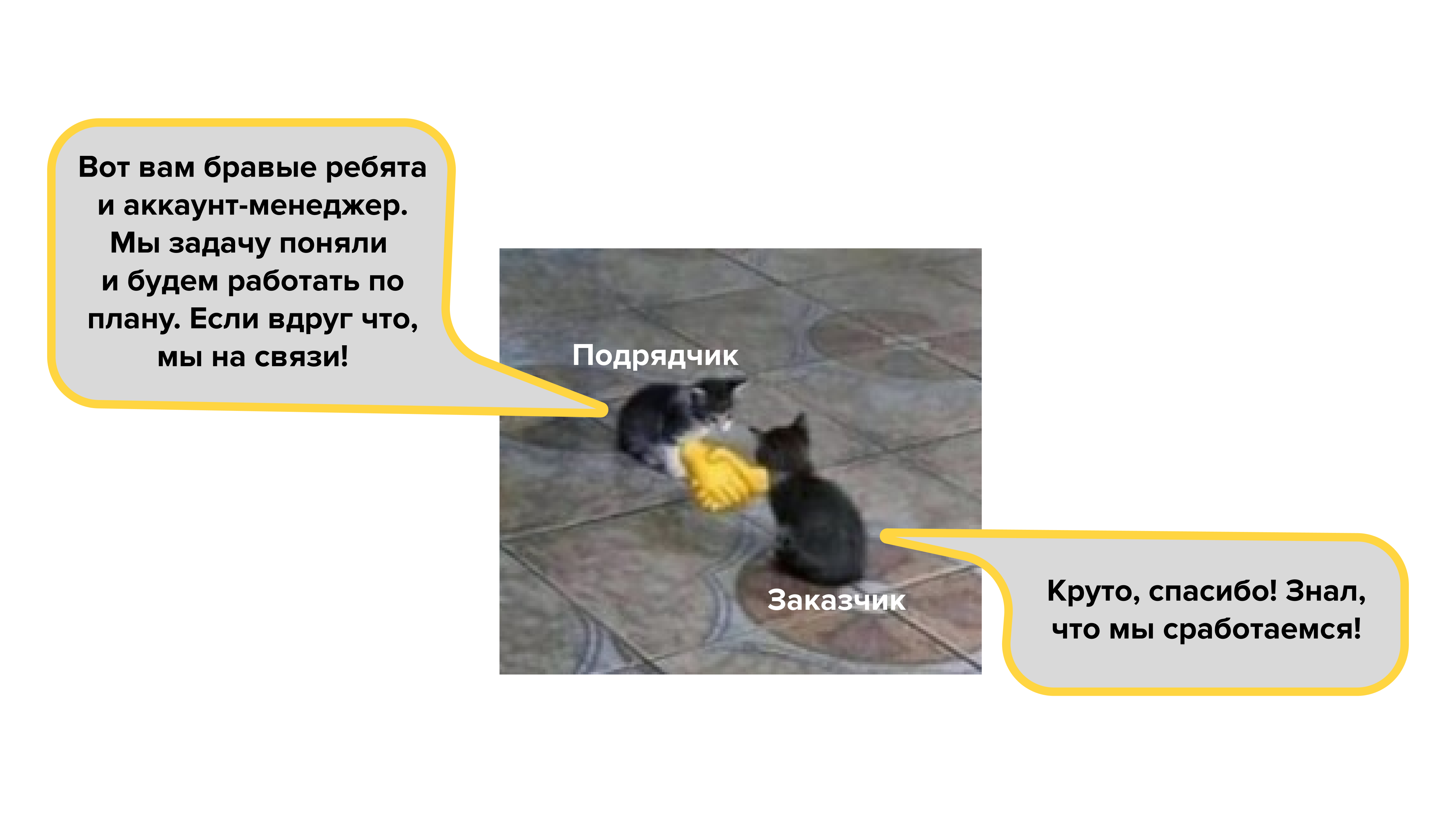 В идеальном мире каждый подрядчик печётся о боли бизнеса заказчика как о своей собственной. Уровень вовлеченности должен быть сильно выше, чем просто писать код по указке с утра до вечера. Идеал, наверное, недостижим, но стремиться к нему стоит.