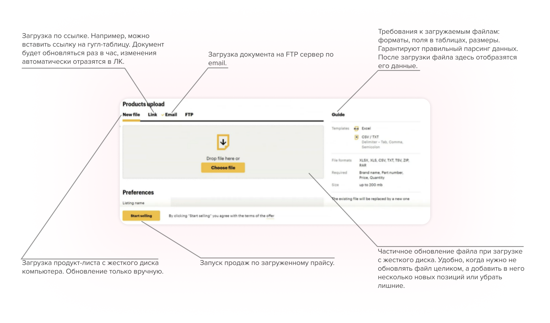 - Поставщики регистрируются в Seller Drive и загружают туда прайс-листы со своими товарами →