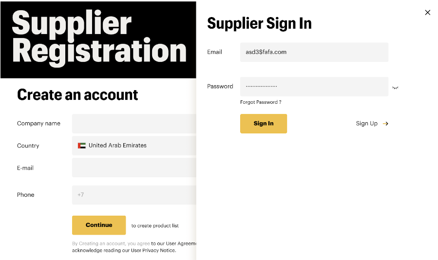 Взаимодействие поставщиков с системой начинается со входа или регистрации.