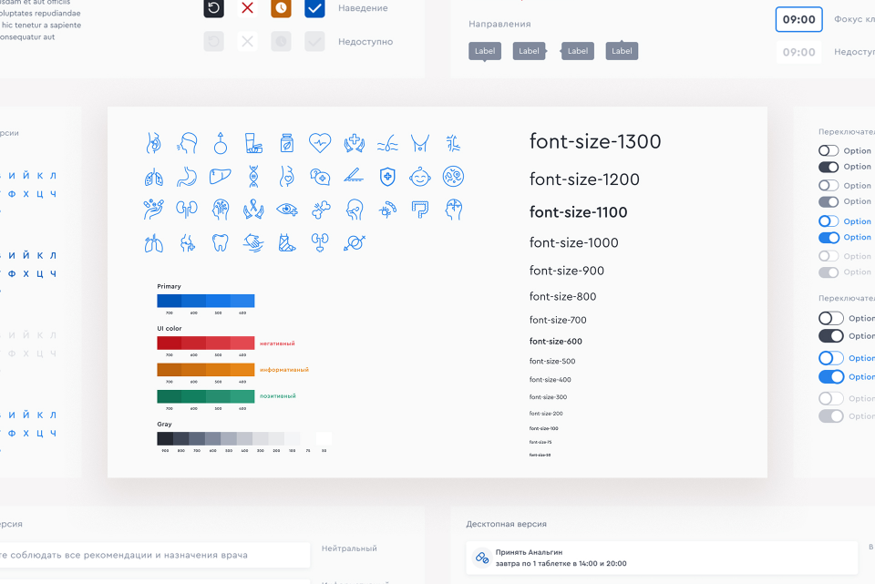Мы знали, что после окончания нашего проекта «ФармАльфа» и «IT-бета» продолжат поддерживать и развивать МИС. Чтобы со стороны дизайна у них не возникало с этим сложностей, мы подготовили дизайн-систему и собрали в неё все наши наработки.
