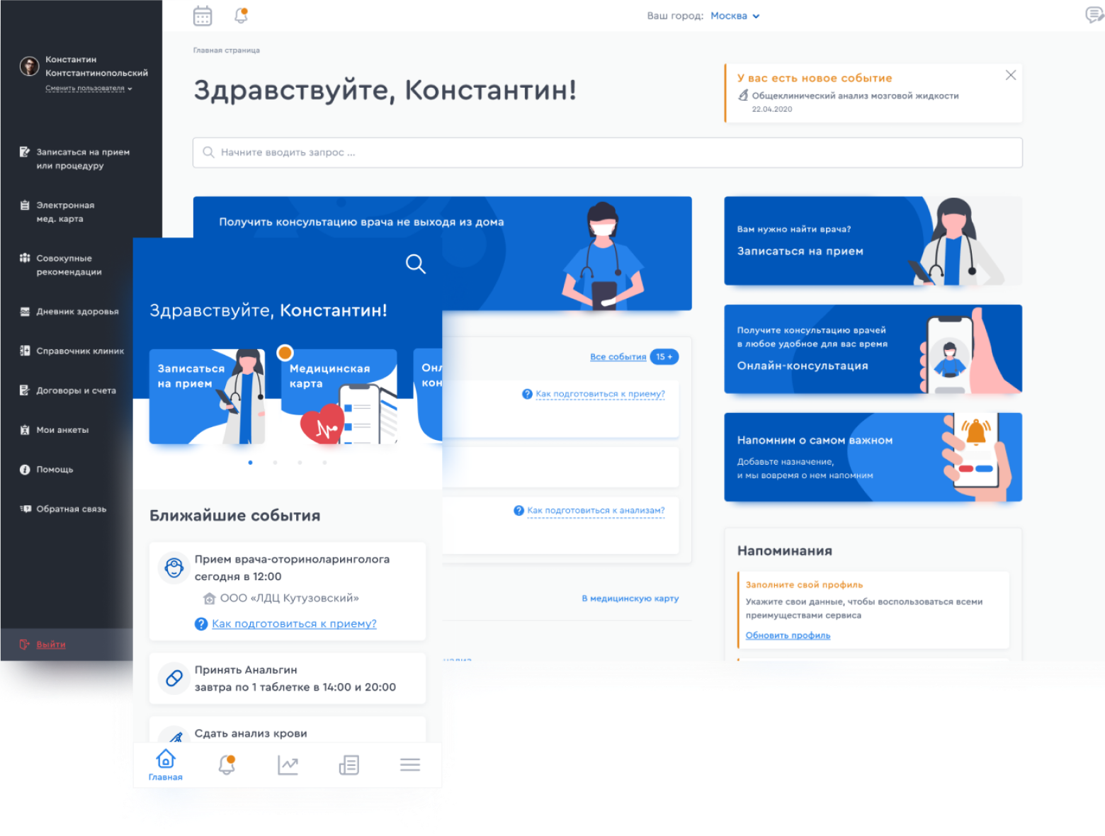 Мы продумывали, как сделать путь пользователя до цели максимально быстрым, удобным и понятным. Фактически, мы выстраивали новую логику работы МИС, упрощали ее.