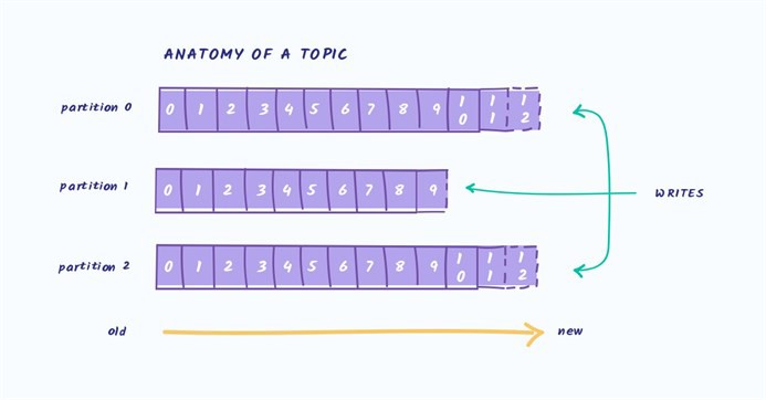 На самом низком уровне Kafka — это просто распределённый лог-файл. То есть, по сути, файл, разбитый на несколько частей (партиций) и «раскатанный» на несколько узлов кластера. Запись в этот файл всегда происходит в конец. Разделение файла на части необходимо для ускорения чтения из очереди и горизонтального масштабирования. Ваш Topic (тема) может быть «порезан» на сколько угодно частей. Соответственно, вы можете разделить Topic на сколько угодно серверов. Из каждой партиции может читать не более одного Consumer (читатель). Это значит, что максимальное число параллельных читателей равно количеству частей, на которые разбит ваш Topic.
