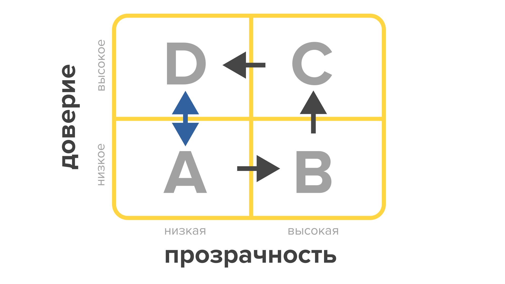 Когда заказчик приходит к нам впервые, доверие у него на нуле, даже если он прочитал все статьи и кейсы и услышал тысячу рекомендаций. На этапе продаж важно повысить доверие, а для этого – быть максимально прозрачными. Главная цель в продажах – довести до максимума уровень доверия. Делать это нужно постепенно, и один из инструментов здесь – «Продавать меньше, чтобы продавать больше».