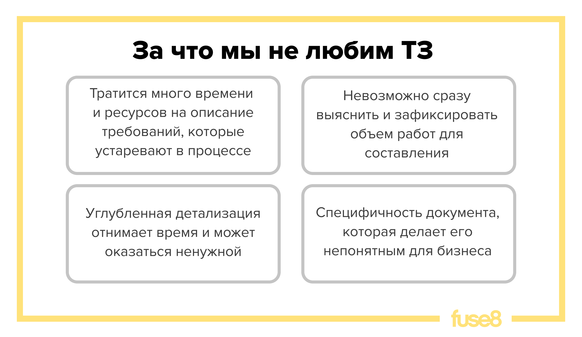 У классического подхода к созданию ТЗ есть 4 основные проблемы: