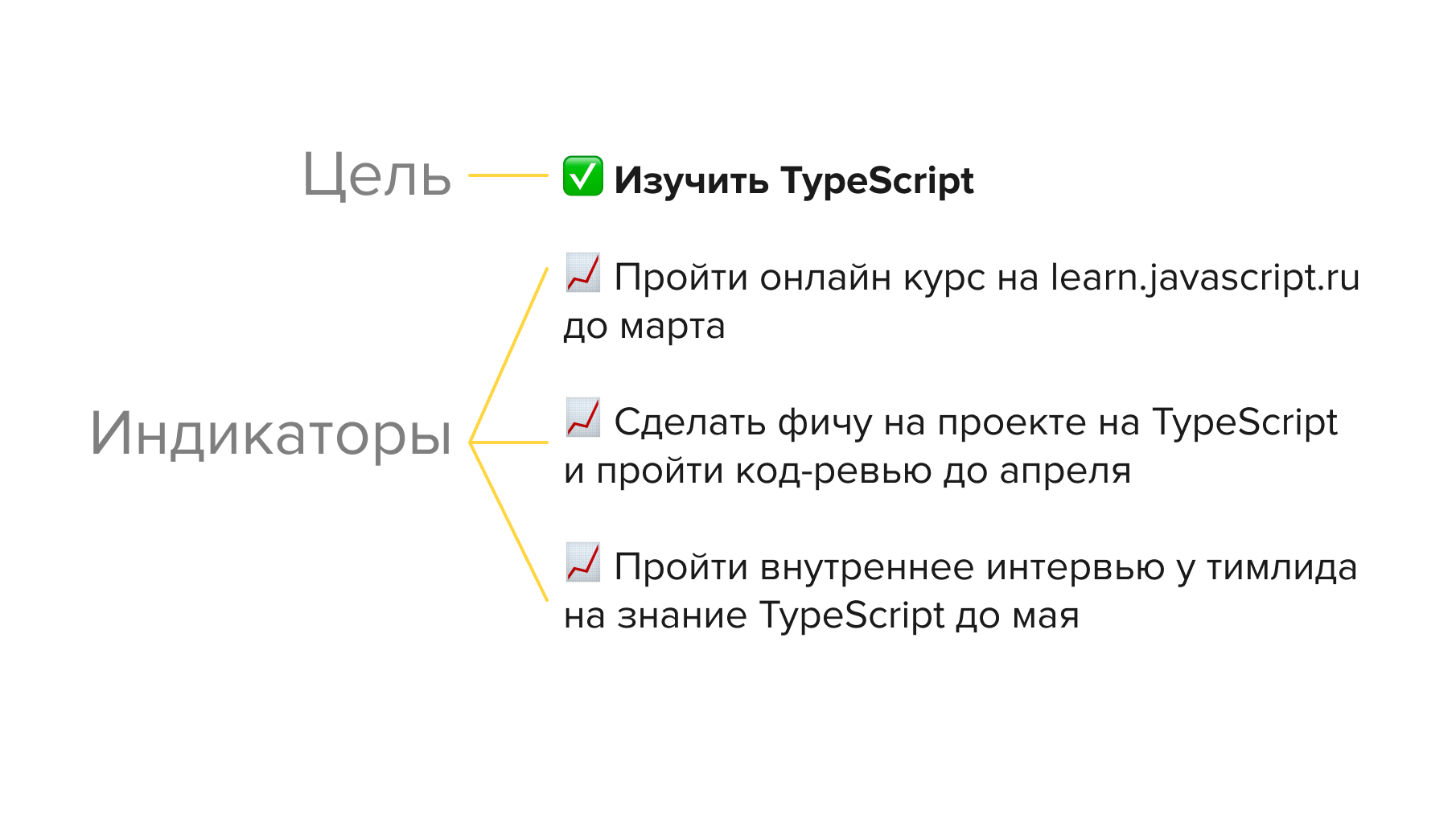 Как мы поймем, когда цель достигнута? Не всегда получается ставить цели по SMART, особенно трудно это даётся с целями по развитию навыков. Поэтому измеряем достижение целей индикаторами.