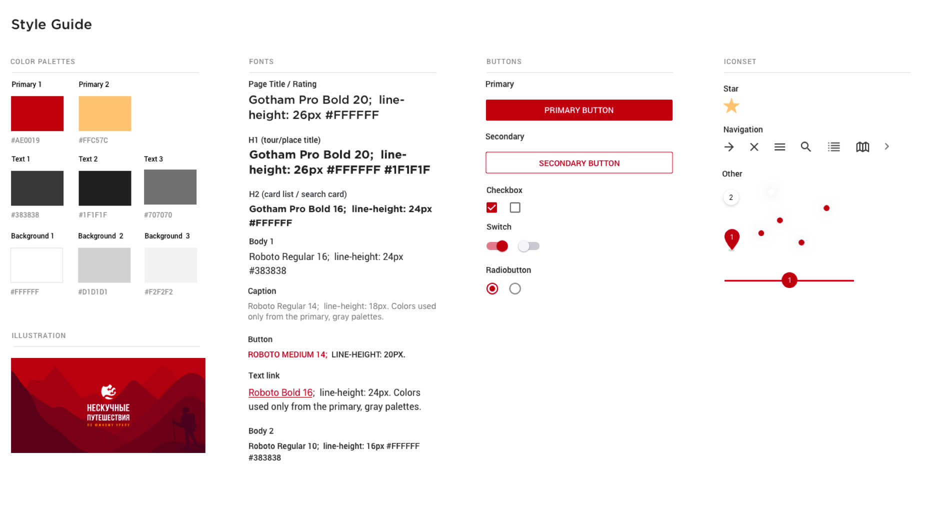 Для каждого проекта мы готовим стайлгайд и библиотеку основных компонентов. Это помогает сохранять дизайн консистентным и облегчает жизнь разработчикам. Поддерживать проект со стайлгайдом гораздо проще.
