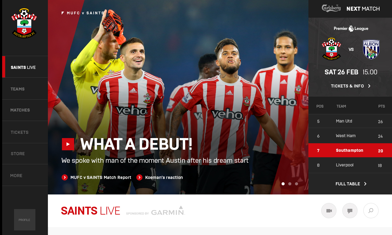 Сайт «святых» был запущен в начале сезона 2016, как и хотело руководство клуба. Перед тем, как отдать проект в разработку, наши коллеги из Англии провели исследование и выяснили, чего ждут люди от сайта футбольного клуба. Поэтому фанаты получили именно то, что им было нужно.