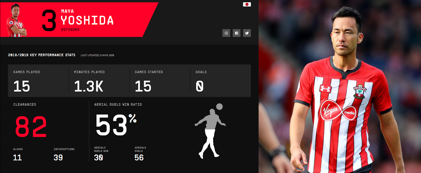 В разделе Teams представлены списки всех игроков «Саутгемптона» с подробной игровой статистикой за сезон.