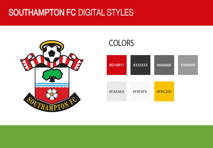 У футбольного клуба «Саутгемптон» есть логотип и фирменные цвета — алый и белый. Они легли в основу стайлгайда нового сайта.