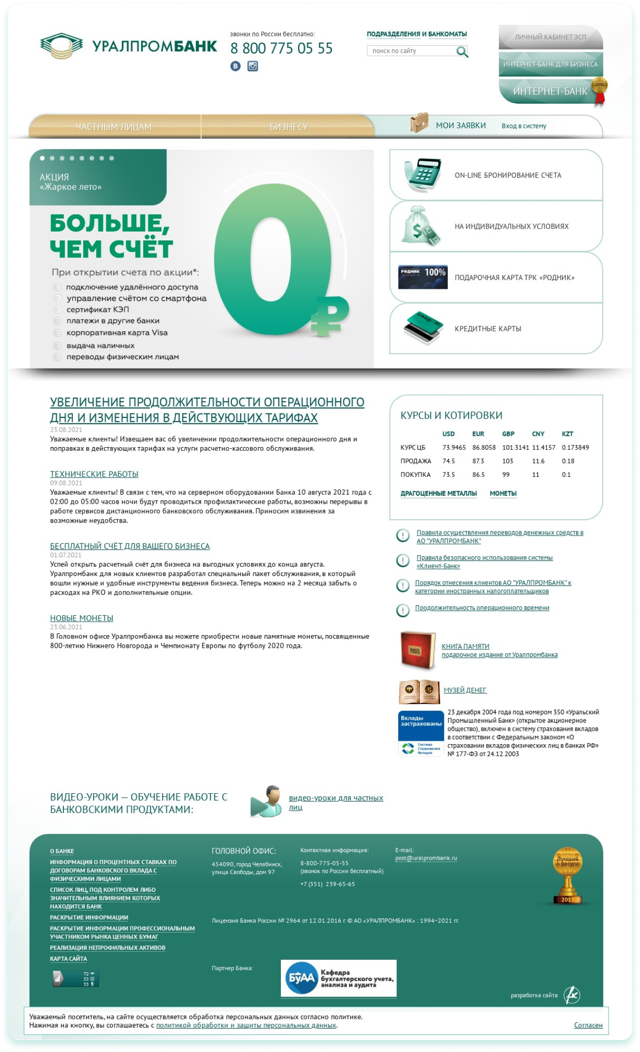 На момент обращения к нам у «Уралпромбанка» уже был свой сайт. Его разработали и запустили еще в 2014 году.