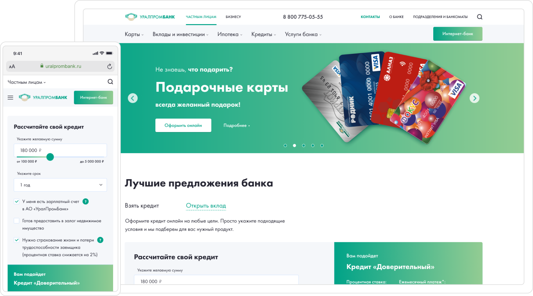 Результатом всех наших работ стал запуск нового адаптивного сайта «Уралпромбанка».